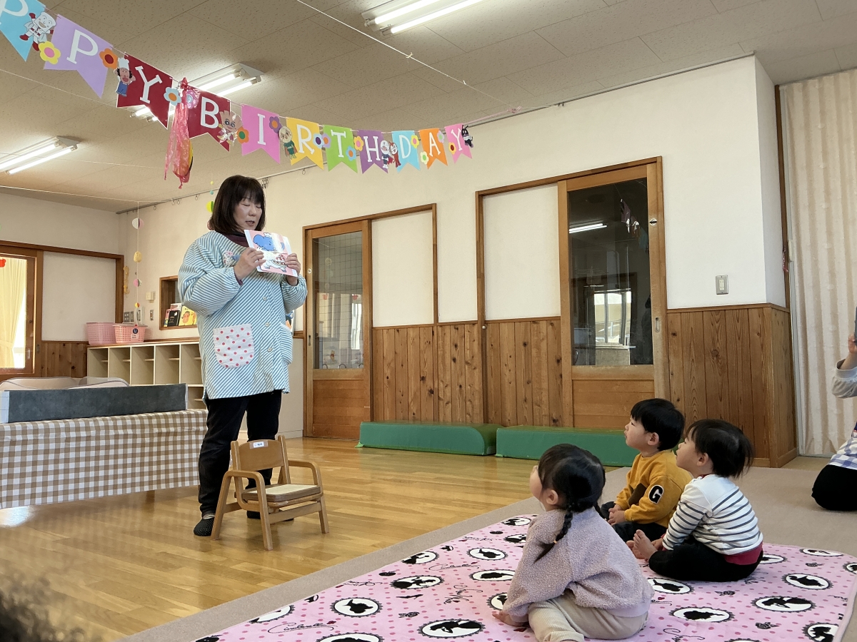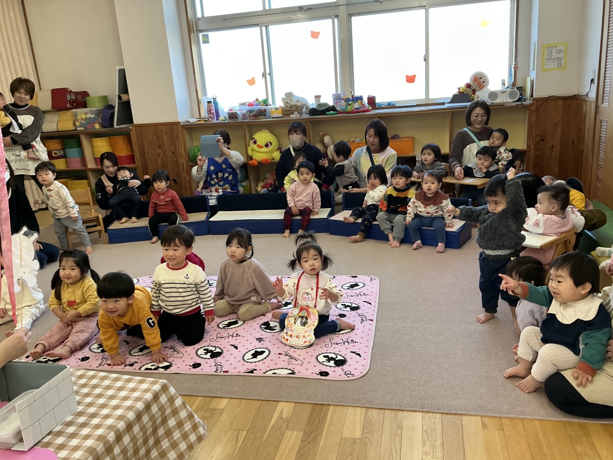 2月の誕生日会を行いました。今月は、2名だったのですが1名欠席でした…