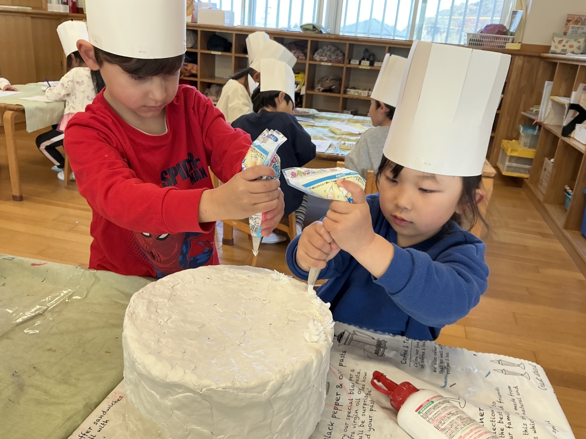 パティシエになりきってケーキ作りに夢中です(^^♪