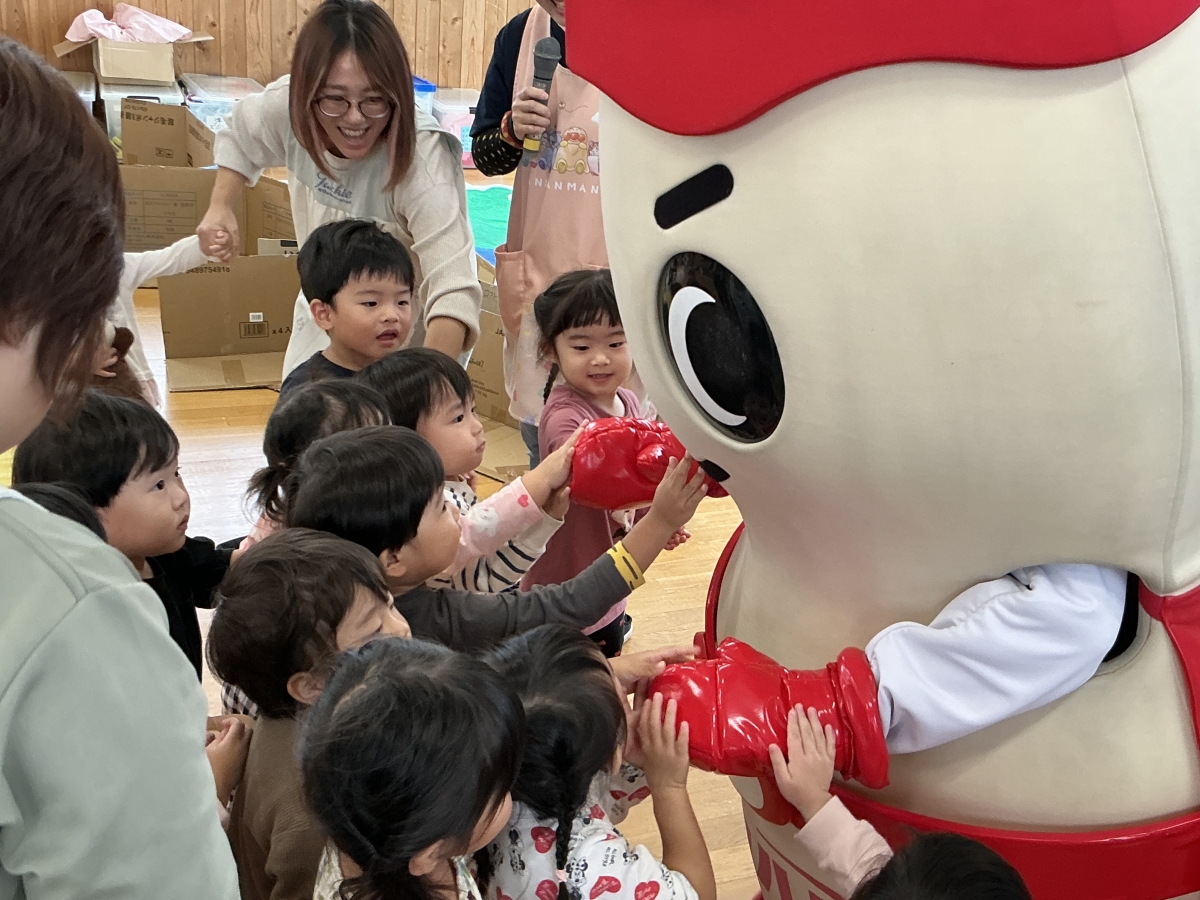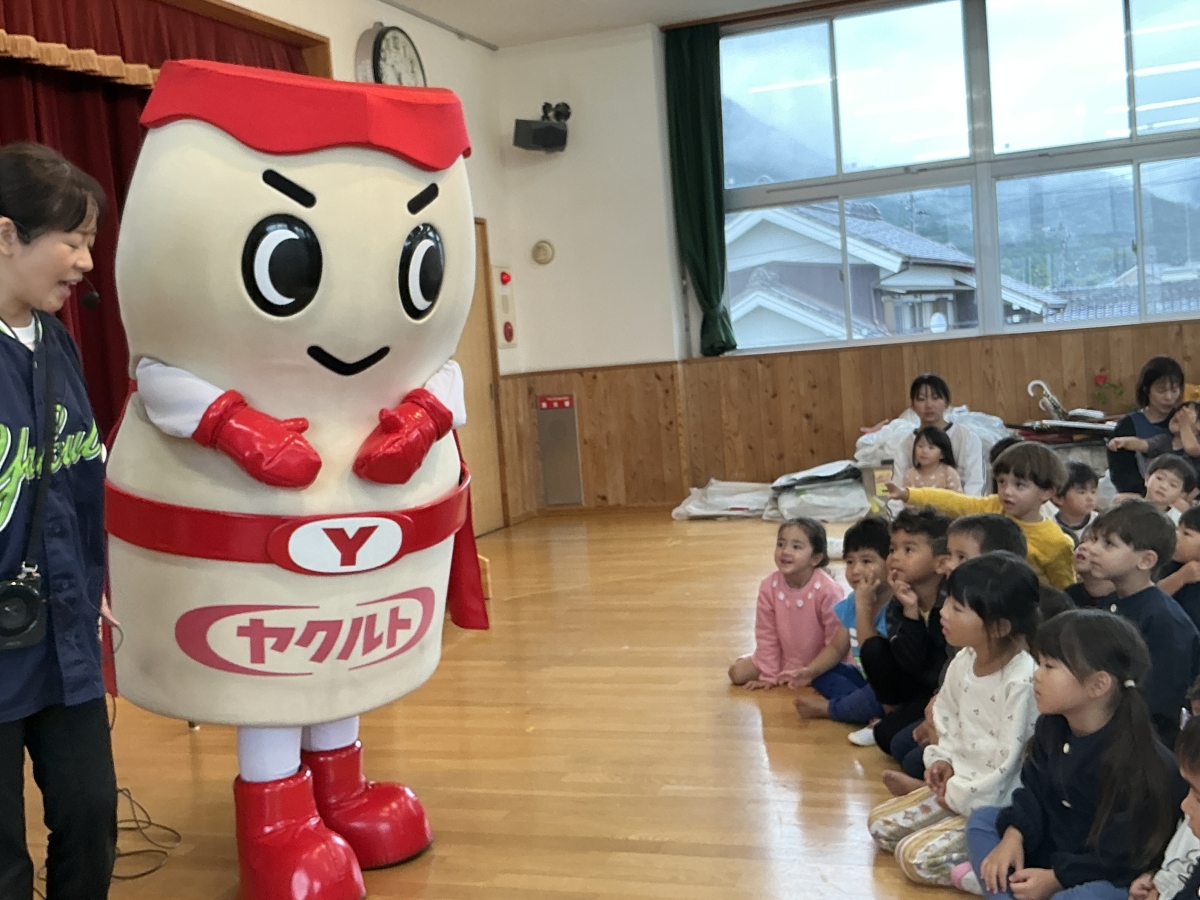 あっ!ヤクルトマンが来てくれた(^▽^)/最後はハイタッチ!ヤクルトマンありがとう。しっかり歯磨きするね。