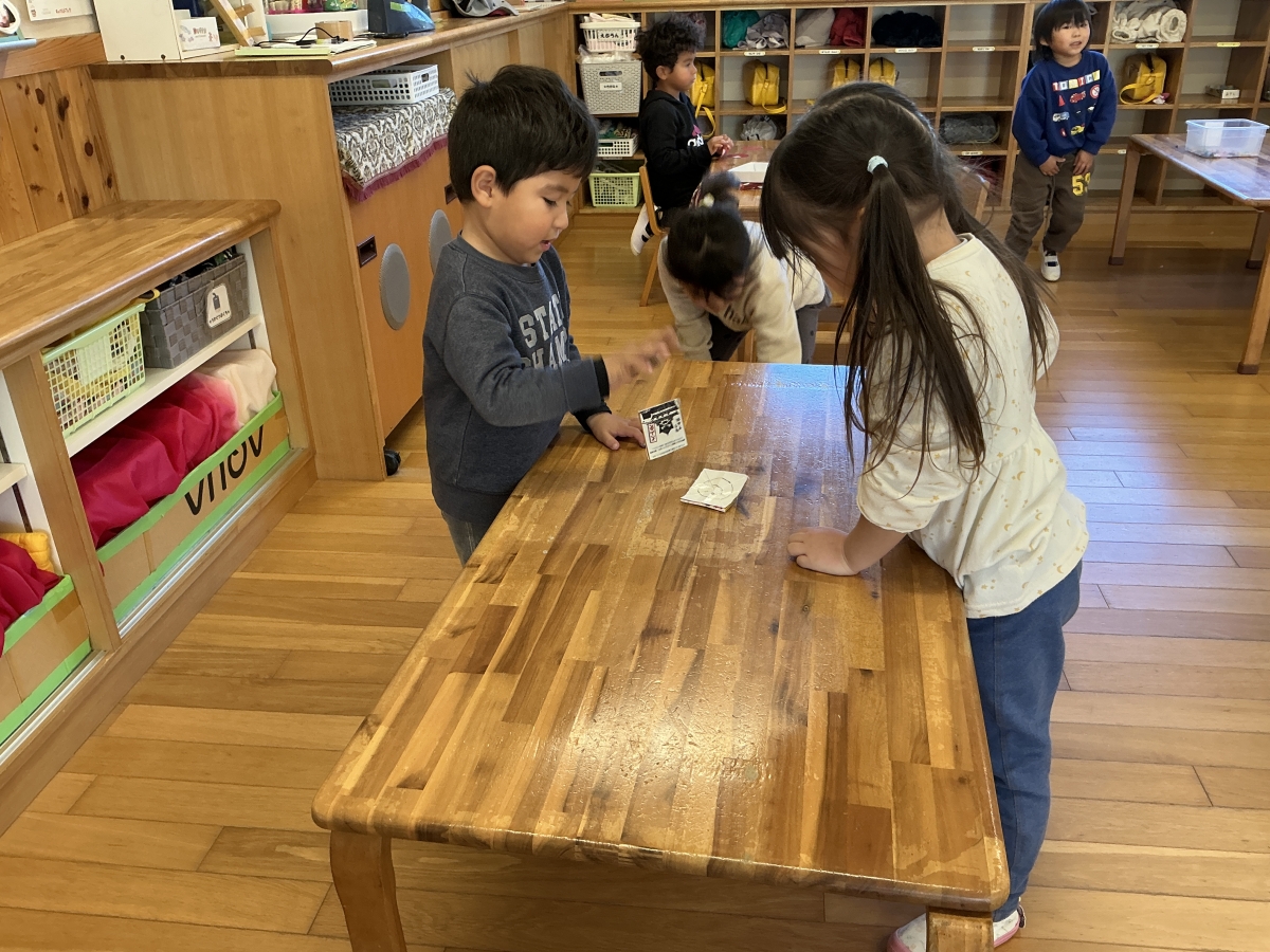めんこ遊びにも挑戦!上手くひっくりかえせるかな?試行錯誤中です・・・(笑)