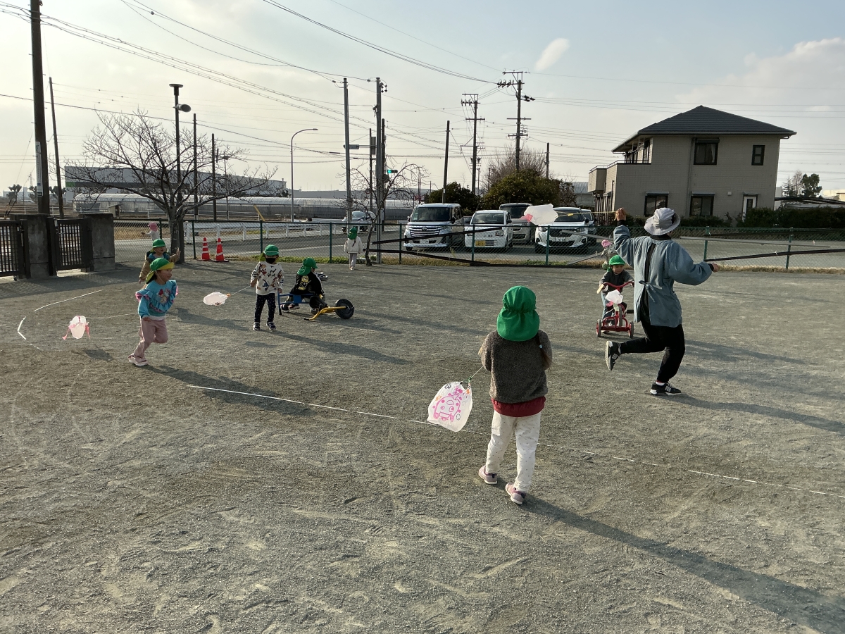 お外では自分で作った凧で凧あげを楽しんでいます♪上手くあがると嬉しいね♪