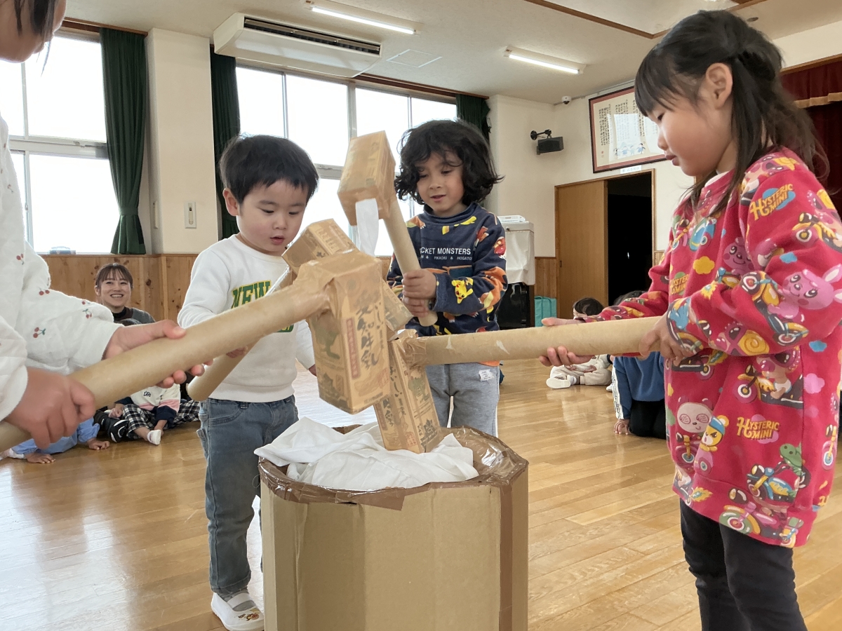 あかぐみさんの餅つきごっこにも参加させてもらいました!おいしいお餅、できたかな~♪