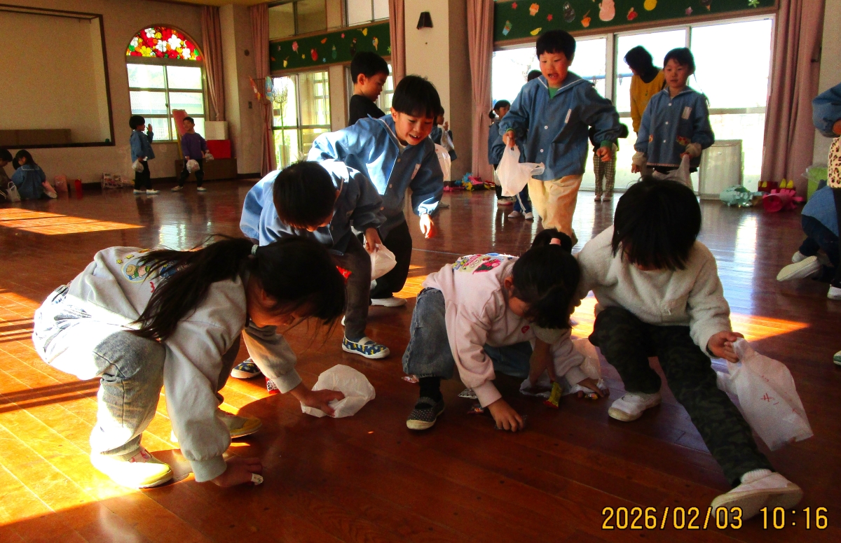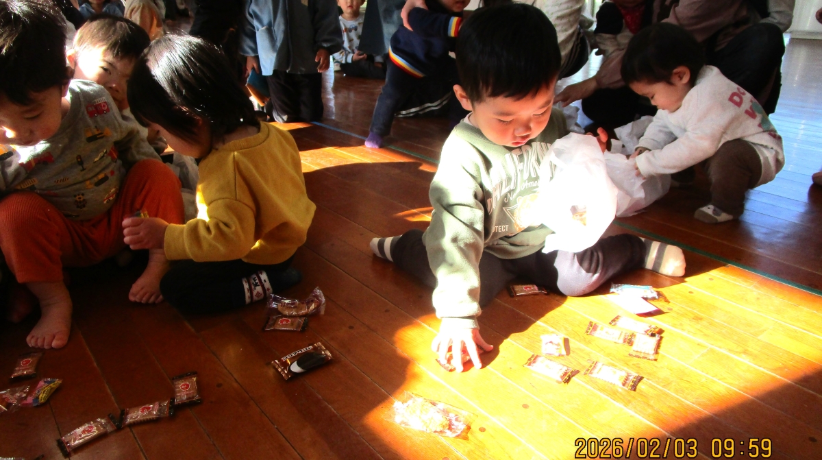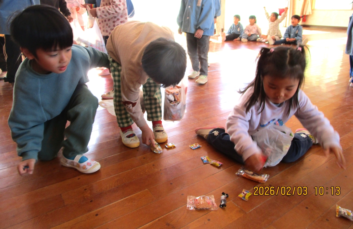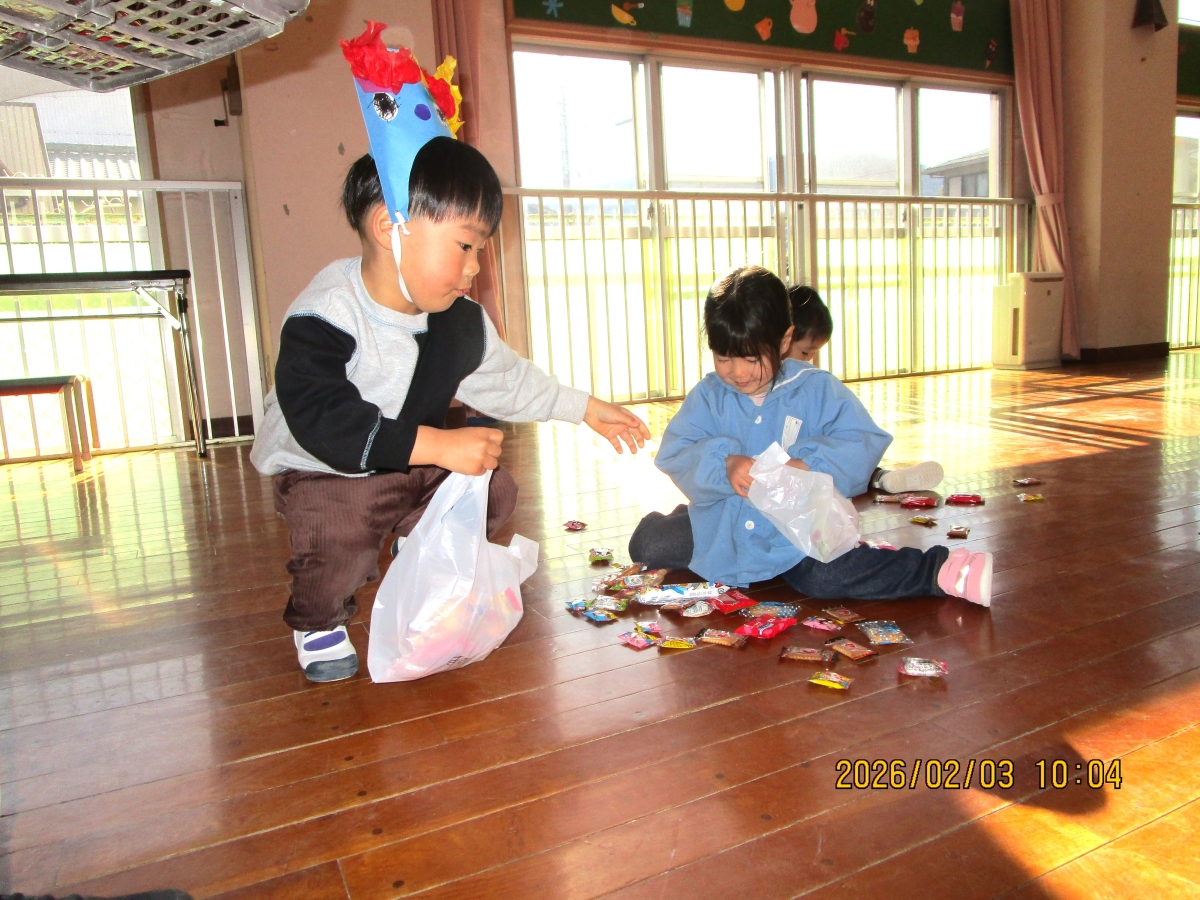 節分クイズや鬼退治、お菓子拾いなどをして、楽しかったね(*^-^*)