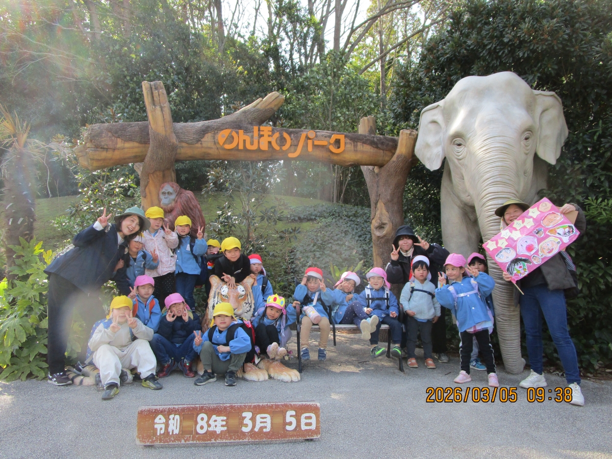 子ども達がとても楽しみにしていた、お別れ遠足♪異年齢で2チーム(ポケモンチームとカービーチーム)に分かれ、のんほいパークへ行ってきました。歩くコースやお弁当を食べる場所など子ども達で考えて準備してきました。当日は、とってもいいお天気☀子ども達の楽しそうな笑顔がたくさん見られました(*^-^*)
