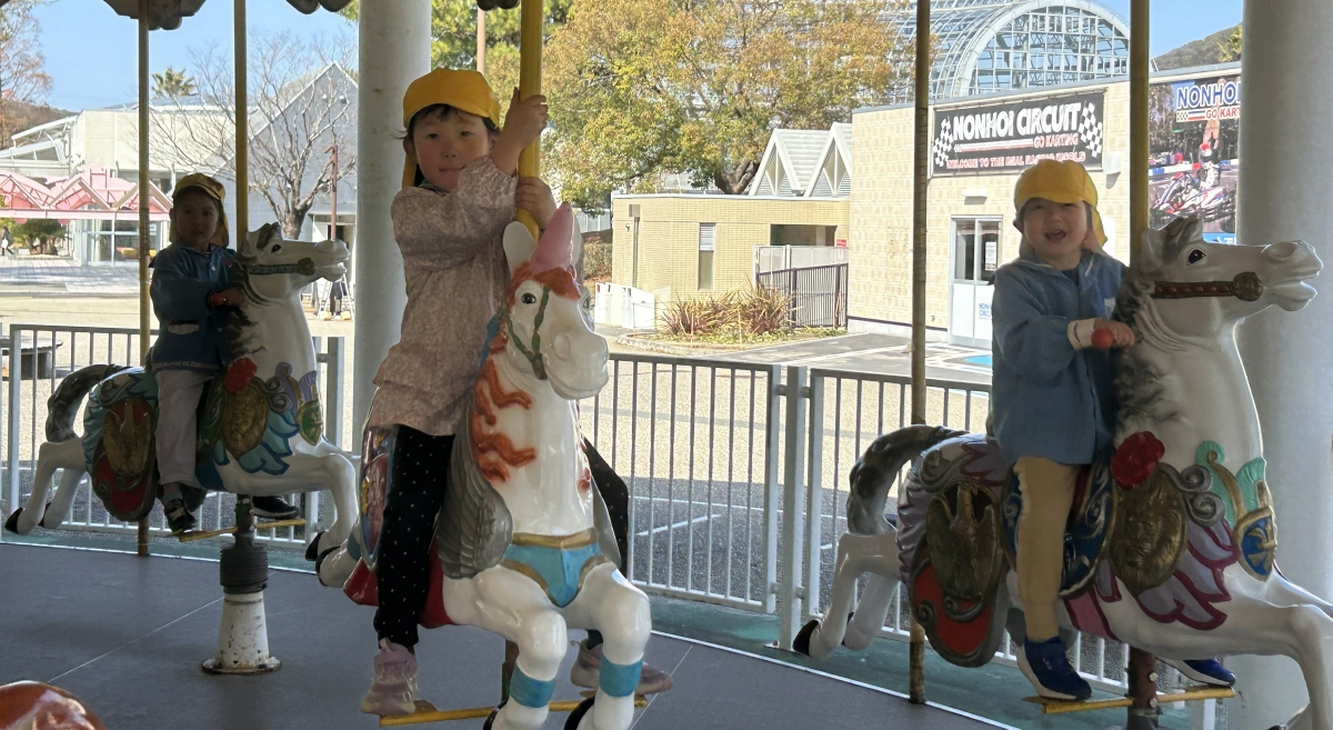 きい組さんは、メリーゴーランドにも乗ったよ(#^.^#)みんなで乗ることができて、嬉しかったよ✌
