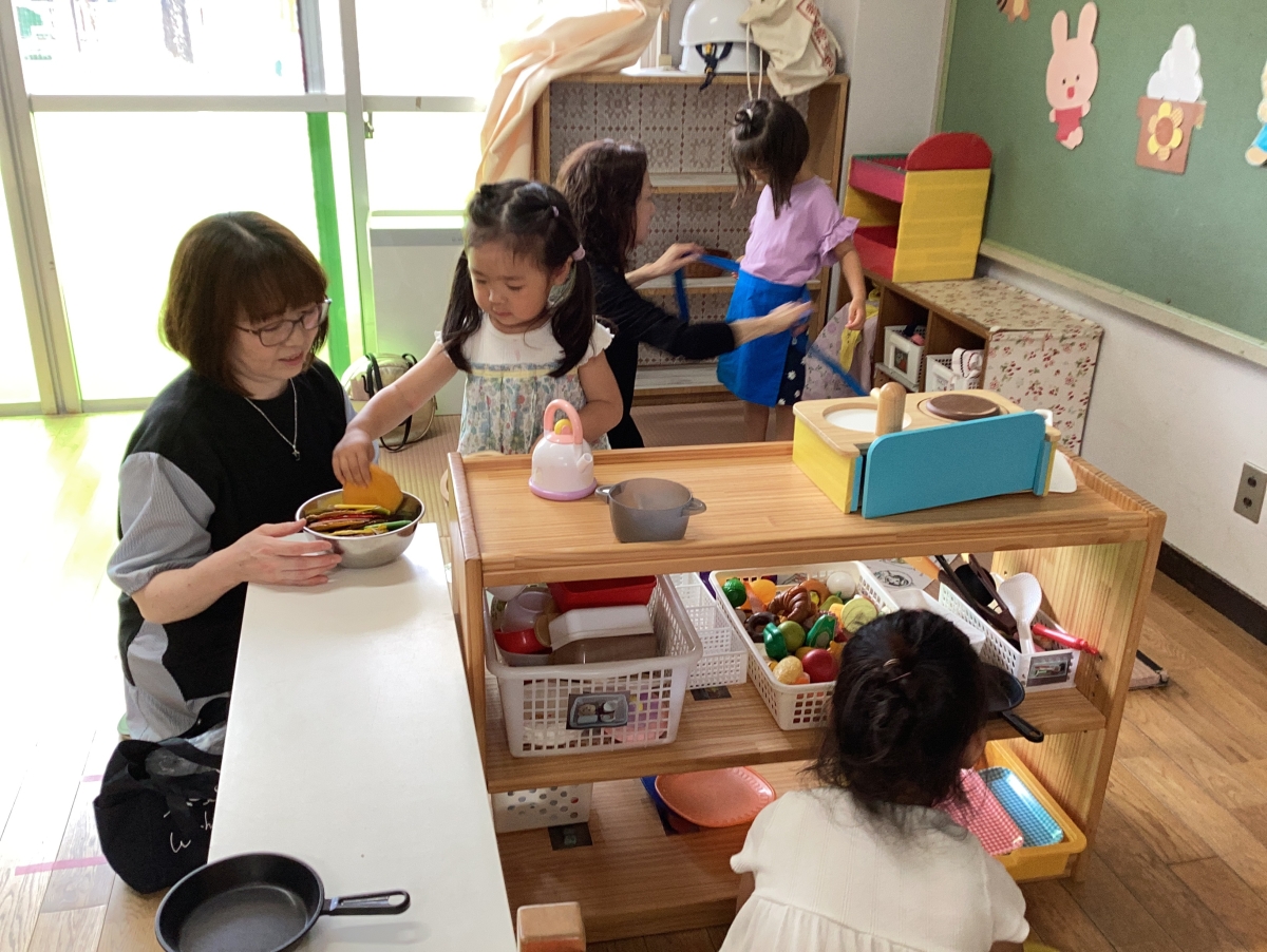 ままごと遊びだよ♪一緒に、ハンバーグ作りをしたよ!(^^)!