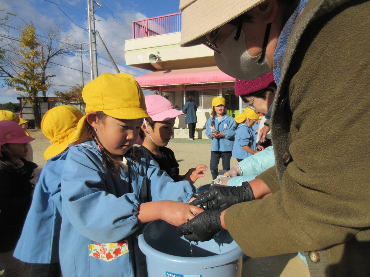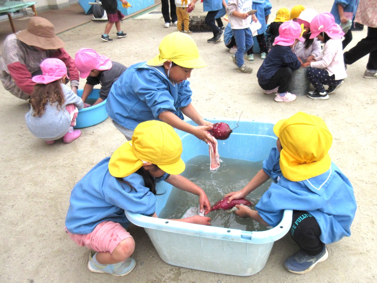 今年も、五縁会の方のおかげでたくさんのお芋を収穫することができました。子ども達は、焼き芋食べることをとても楽しみにしていて、「感謝の会」前日のお芋洗いから、みんなで張り切ってお芋を洗いました(#^.^#)